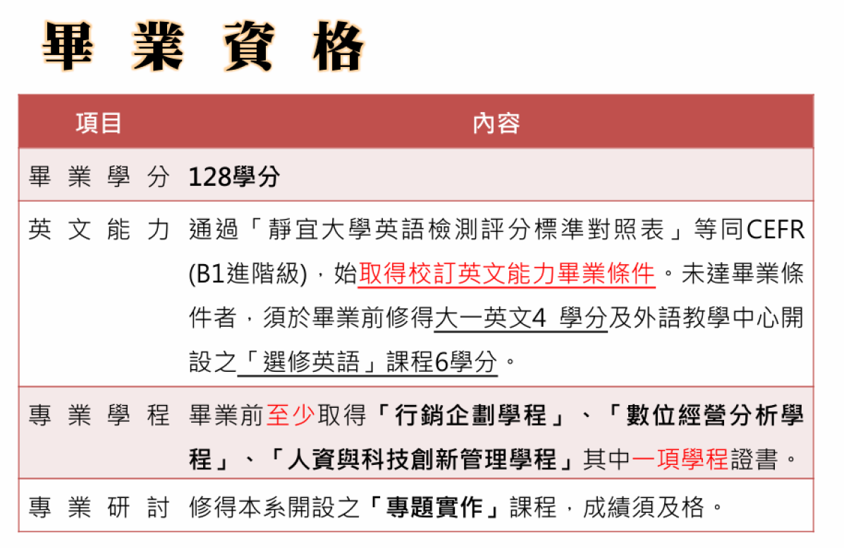 108學年度大學部畢業資格 109學年度大學部畢業資格 110學年度大學部畢業資格 111學年度大學部畢業資格